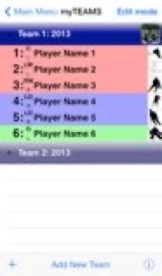 View and edit teams and players. Color coded by player position.
