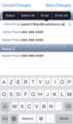 Email player contacts option with a long press.